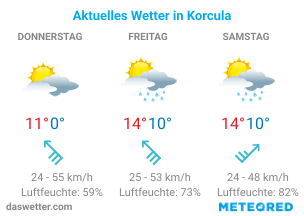 Die kroatische Insel Korcula gehört zu den schönsten Inseln in Kroatien und besticht durch ein mildes Klima, welches beste Voraussetzungen für einen Urlaub am Meer liefert. Die beste Reisezeit für die Adriaküste umfasst die Monate von Mai bis September.